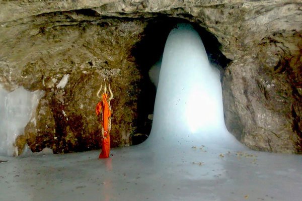 Inside the 40 m high Amarnath cave, a stalagmite is formed due to freezing of water drops from the cave floor. It is considered to be a Shiva Linga
